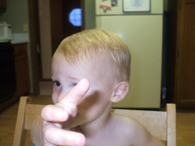 Yesterday my little boy turned 21 months old. Yesterday was also his 1st haircut. I don't know who was more traumatized by that, me or him. I'm pretty sure it was me, though. I'm just not ready for my baby to be a big boy. It was time though. I believe that boys should look like boys, and girls should look like girls. It was getting pretty long and falling in his eyes, so I shed a few tears and cut off his beautiful little baby curls.